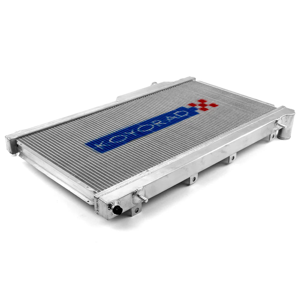 This is the Koyo Aluminum Racing Radiator. This radiator features all-aluminum construction to not only improve the cooling efficiency of your vehicle but it will also be much more durable when compared to your factory radiator. Depending on your application, most factory-issued radiators will have plastic upper and lower tanks. These tanks will expand under endless heat cycles, and eventually, they will give out and can cause a leak. If you do not replace the radiator asap, this can cause overheating issues which can cause major engine damage. The Koyo unit may just be the last radiator that you would've to purchase because of the all-aluminum construction that can be welded and repaired in the future if you should happen to run into any leaking issues due to damage.
