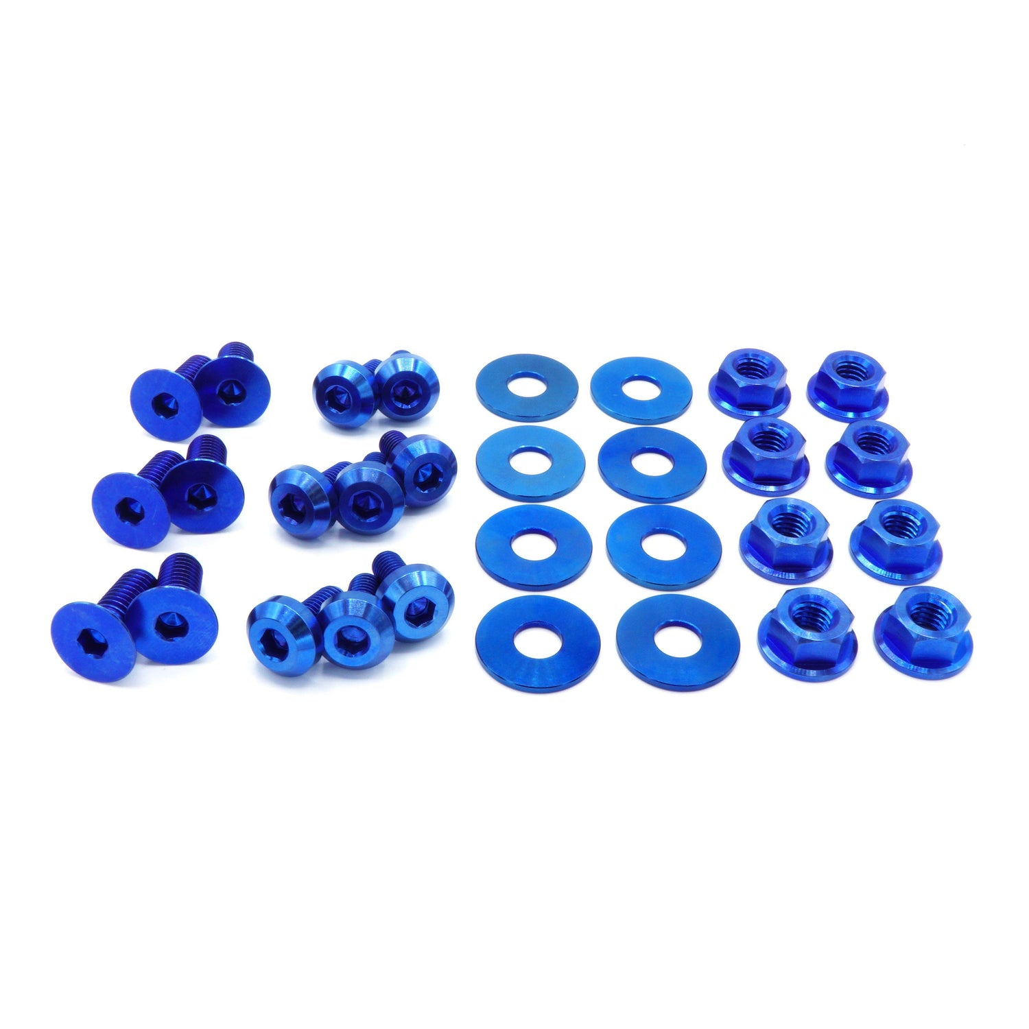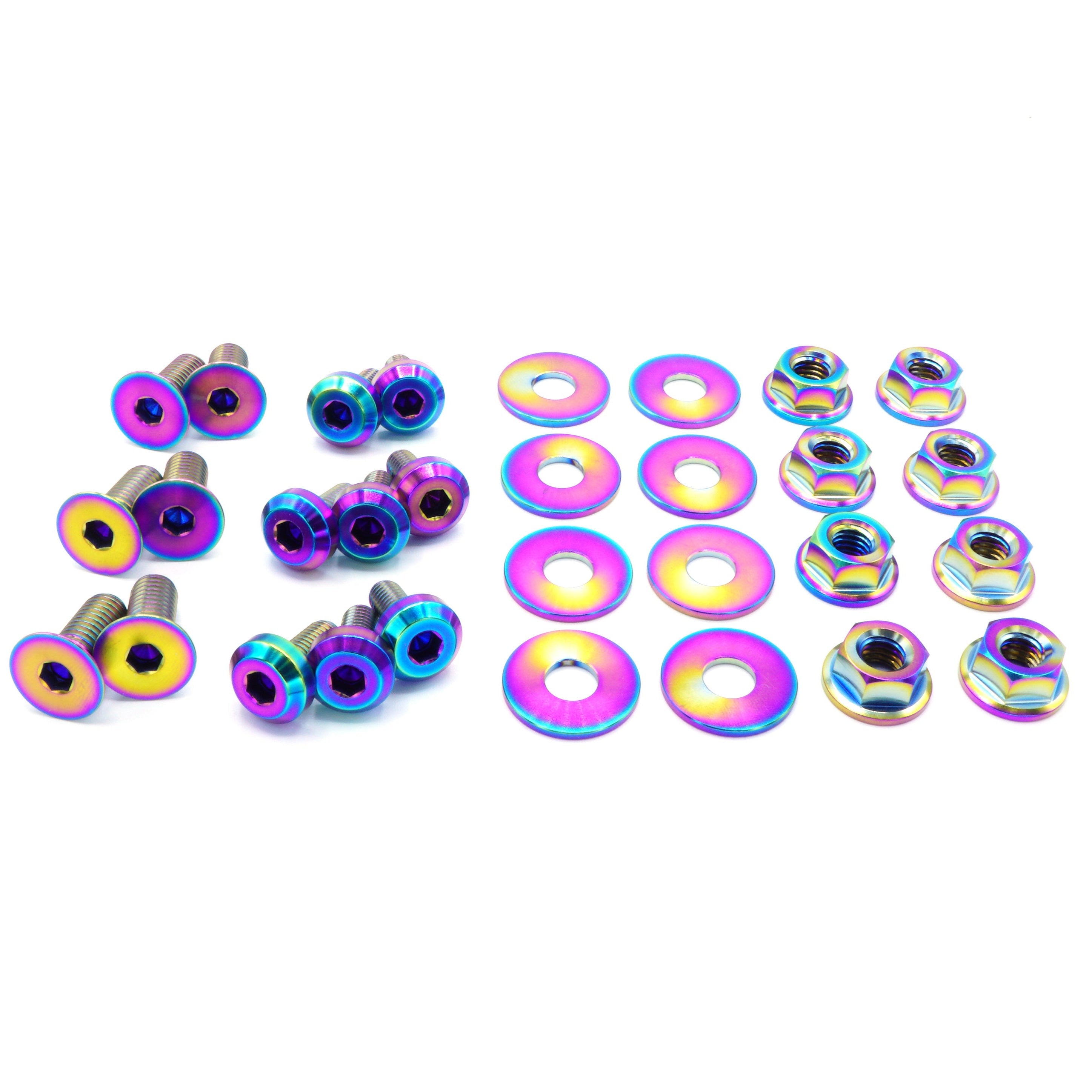 This 30 piece kit includes bolts, nuts, and washers manufactured from extremely durable, anticorrosive, and lightweight GR5 titanium metal.